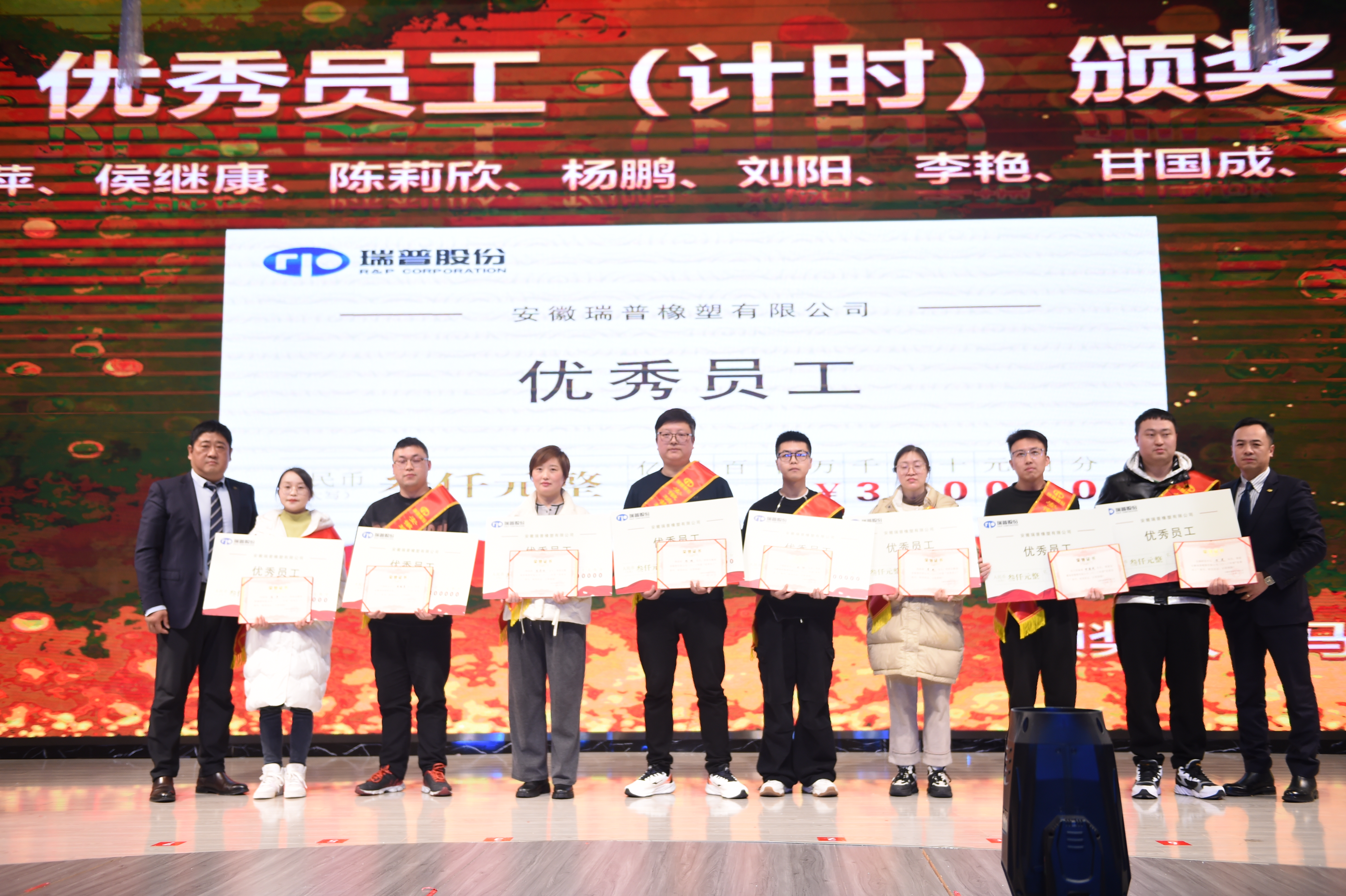 龍騰虎躍慶盛事,馬到功成事業興,安徽瑞普橡塑有限公司年會由國際貿易部經理和人力資源部經理擔任主持人,瑞普2024年會在倆位主持人簡單而又大氣的開場白下正式拉開序幕。